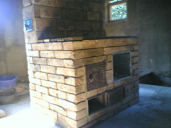 Для кладки печи лучше всего использовать полнотелый кирпич старого производства (советский примерно до 1960 года, а лучше всего дореволюционный) — он гораздо прочнее современного и лучше по теплоообменным свойствам. Кроме того, с ним легче работать — при сколах четвертей и половинок не рассыпается, а принимает нужную форму. В литературе можно встретить предупреждение о непригодности кирпича, очищенного от известкового раствора — якобы вызывает конденсат. При эксплуатации собственной печи я ничего подобного не наблюдал.