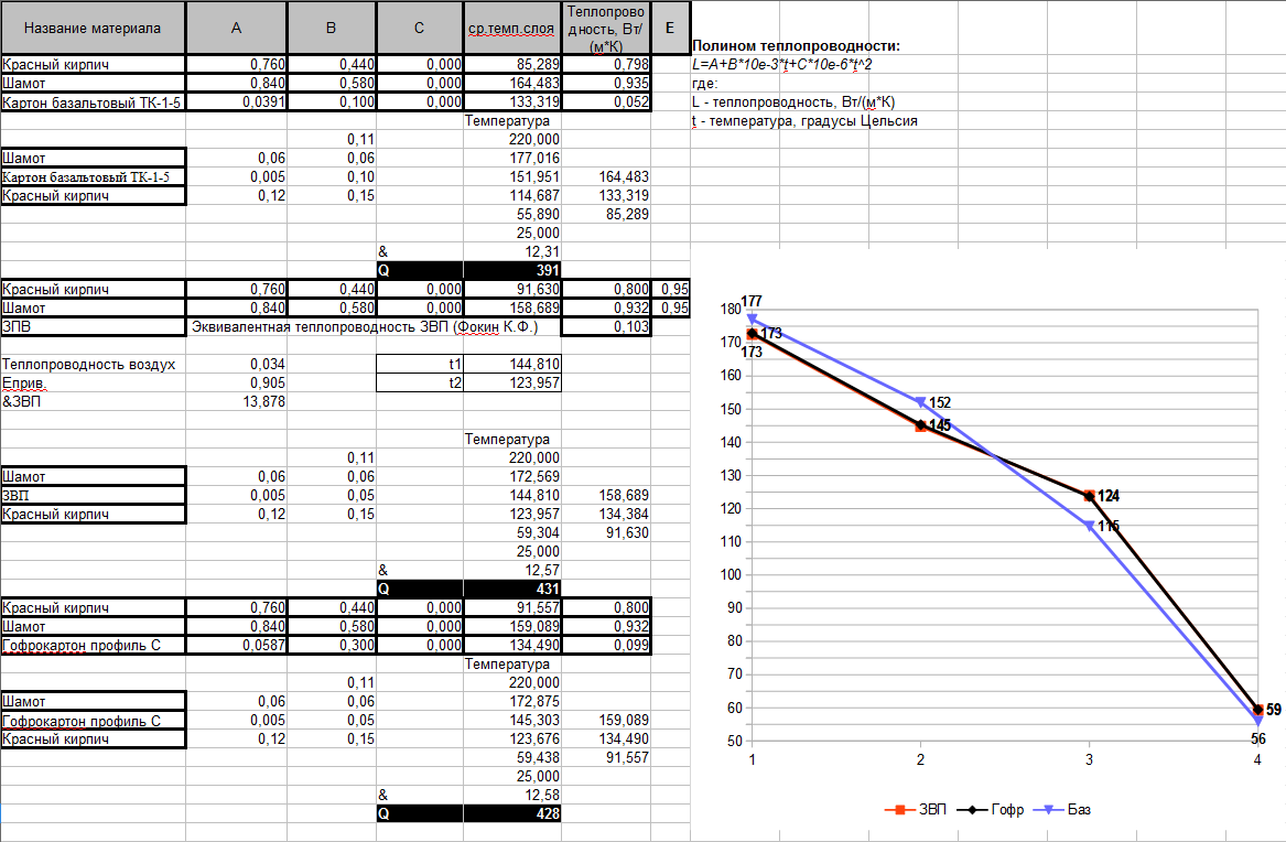 Кстати, вы и на своем калькуляторе можете это увидеть, изменив параметры внешнего сопротивления теплопередачи, и оценить изменяющуюся удельную мощность от стенки печи. Так же вы можете посчитать, насколько надо нагреть шамотный кирпич для его расширения на 1.5 см при высоте кладки 1.8 метра.