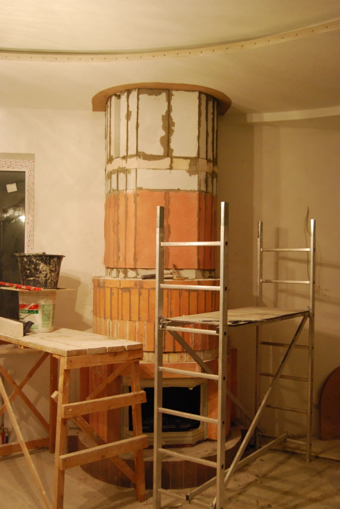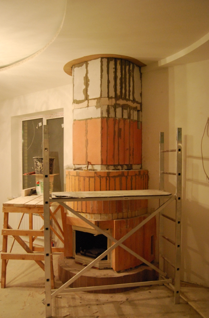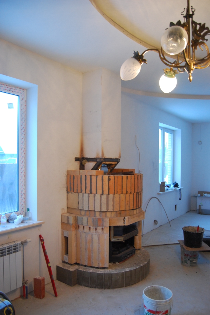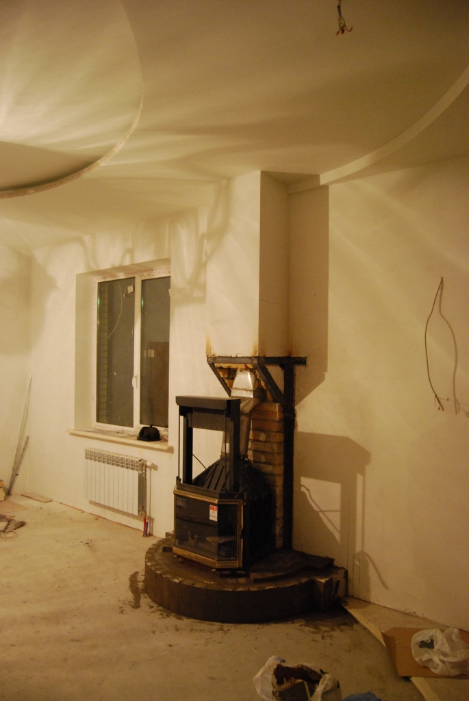 Вводные: объект в Бернгардовке; прежний печник взявшись за работу, работу эту затянул( причины не известны... да я и не выяснял) ; начав работы, стал разбирать коренной дымоход для гильзовки , не просто вскрыл одну плоскость... а разобрал весь низ дымохода... вследсвии чего, весь дымоход( высотой 10 метров) повис в воздухе!!! Уж не знаю на чем он держался... но когда я приехал на объект, удивлению моему не было предела.
