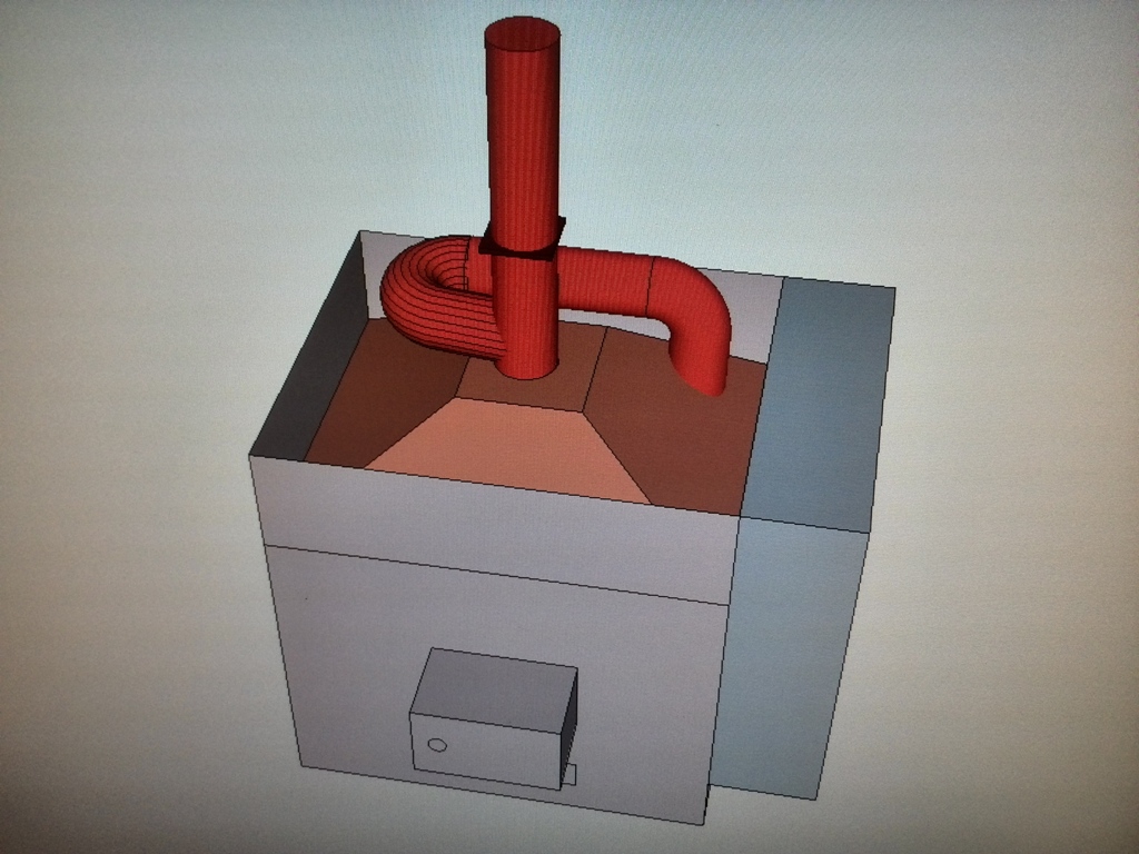 Приношу свои извинения. Не разглядел. Буду впредь внимательнее. По поводу металлических печей не силен. Но, думаю, надо было бы делать перевалочную стенку (предусмотреть в конструкции), чтобы перераспределить тепло. Восходящий канал (если его так можно назвать) как раз проходил бы параллельно баку с водой и уходил бы в трубу.