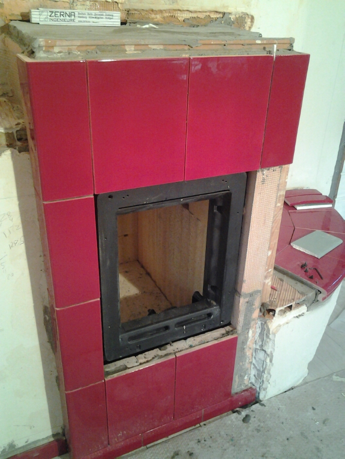 Заказчица захотела печь в европейском стиле. Условия были такие: минимализация размеров, применение печной топки, обогрев нижнего этажа и двух спален на втором. Печь выполнена из немецкого шамота Вольфсхёэ Тонверке, сделана конвекция во все нужные помещения. Изразец изготавливался по размерам из каталога MEZ.Профиль изразца придумывался исходя из желания заказчицы. Этапы строительства конструкции пропускаю, показываю только этап облицовки изготовленным изразцом.
