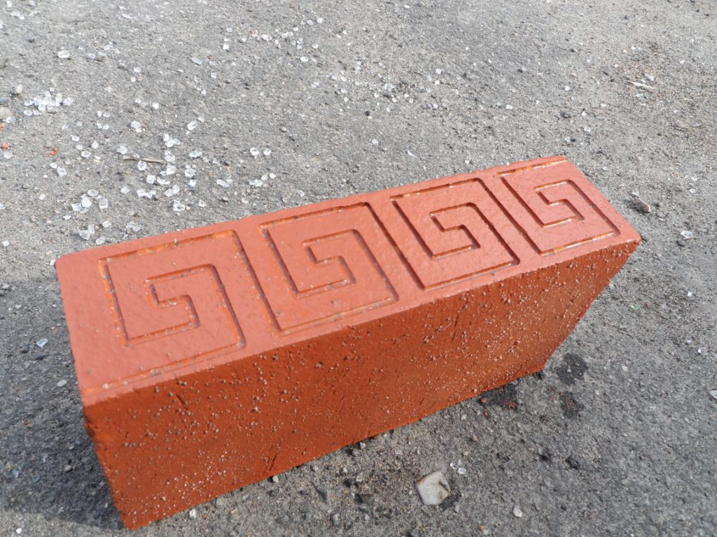 Орнамент стыкуется по вертикальному шву между кирпичами. Шов -как раз в качестве недостающей детали рисунка. Только зачем этот орнамент?. Какой его "тайный " смысл.?