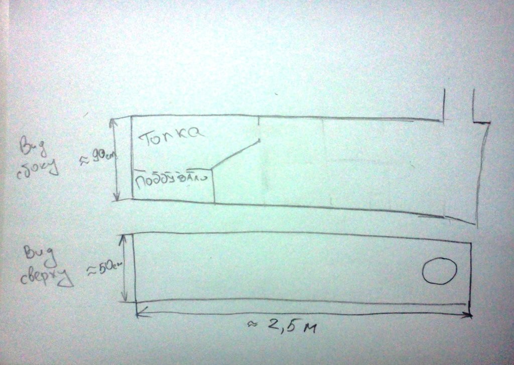 Например сантиметров 90 в высоту, примерно 50 в ширину, а в длину - метра 2 - 2,5 ? см. рисунок.