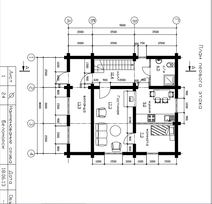 проект дома,фундамент под печь на30 см шире ,дом сделан из бруса по этому проекту
