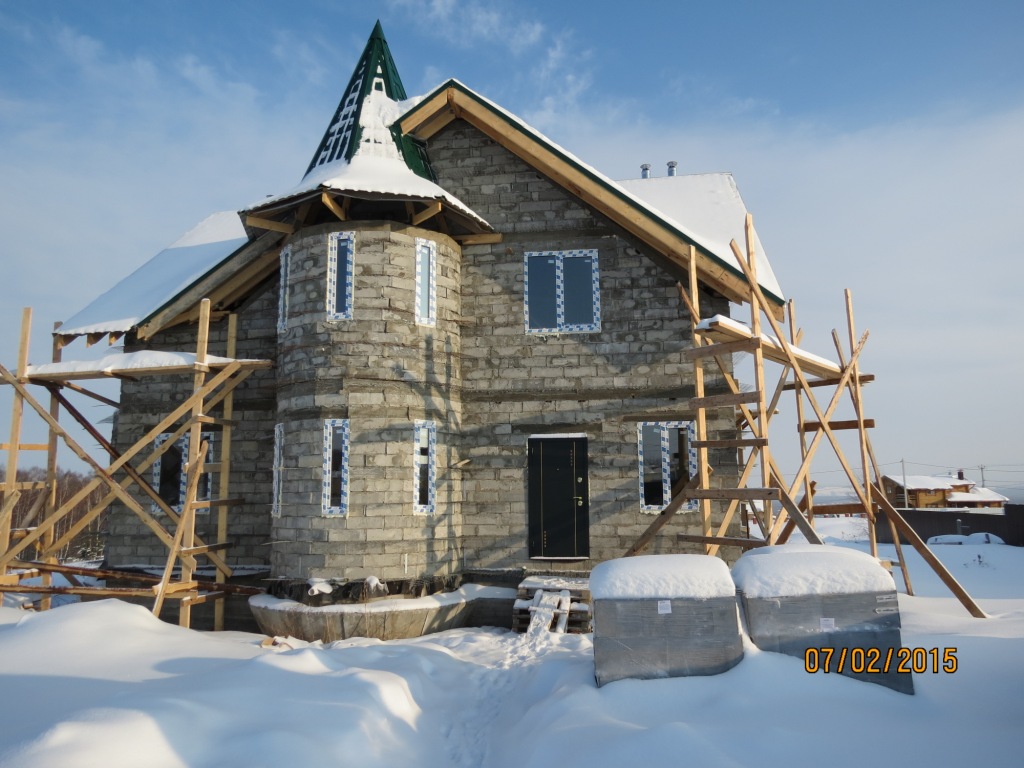 Для понимания моих способностей и правильности роста рук, сиё сооружение строил своими руками, кроме армопоясов и крыши, данные работы тяжелы для одного и не реальны.