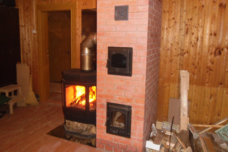 Вариант - печь со своей топкой и рядом буржуйку для быстрого нагрева.