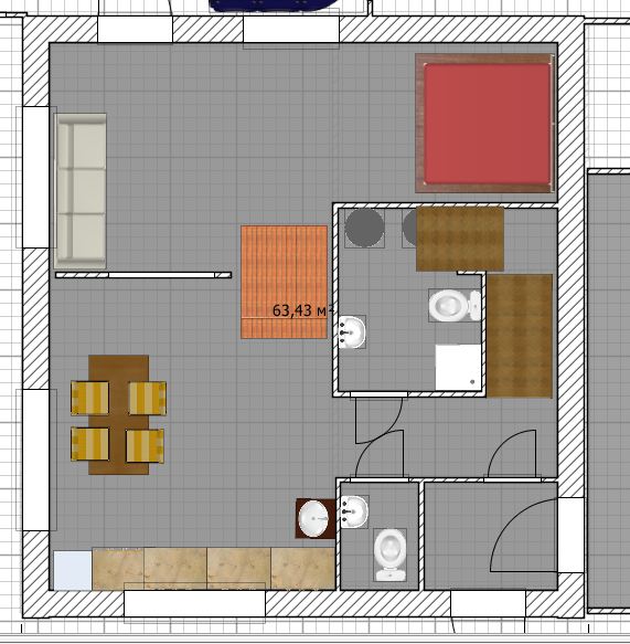 И топку, предполагала, что оптимальней со стороны коридора делать. Или так и предполагается, что короткой стороной к санузлу, а длинной в комнату? Или я неверно воспринимаю проекты, и дверцы легко переносятся?