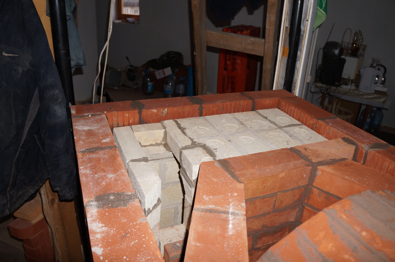 Перекрыша топливника шамотным кирпичом.