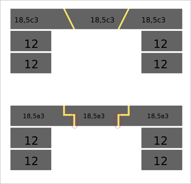 Для internet_pechnik . Возможно, что Вы не поняли или рисунок непонятен, но tuomob всё правильно сориентировался, что я спрашивал. Жёлтый - это футеровка топливника. Топливник перекрыт, но как и, что там не показано, поскольку не в этом вопрос. А вот планируемый вариант перекрытия колпака, который выполняется уже красным кирпичом - показан. Ну, так вроде этот вариант перекрытия по первому ряду - нормальный. Для меня вопрос в том, чтобы в перекрытие железо не класть. А тут вариантов не сильно много. Либо напуском, либо аркой. Но арка тут тоже вроде ни к чему, так, что напуском. А для сокращения рядов ставлю клин. Так, что да - красный и здесь это низ второго колпака. Но ведь и это перекрытие тоже сделать нужно, а там от края до края два с половиной кирпича. Вот и спрашиваю.