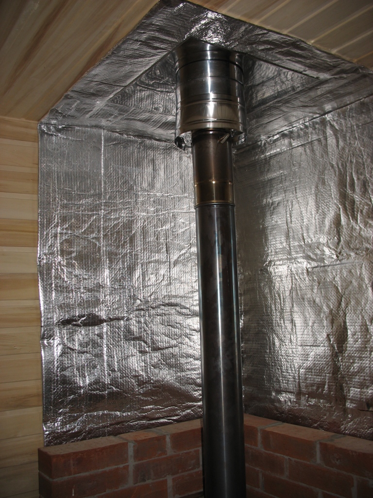 первая труба из печи у меня голая 1мм. нерж изолировал стены фольгированным