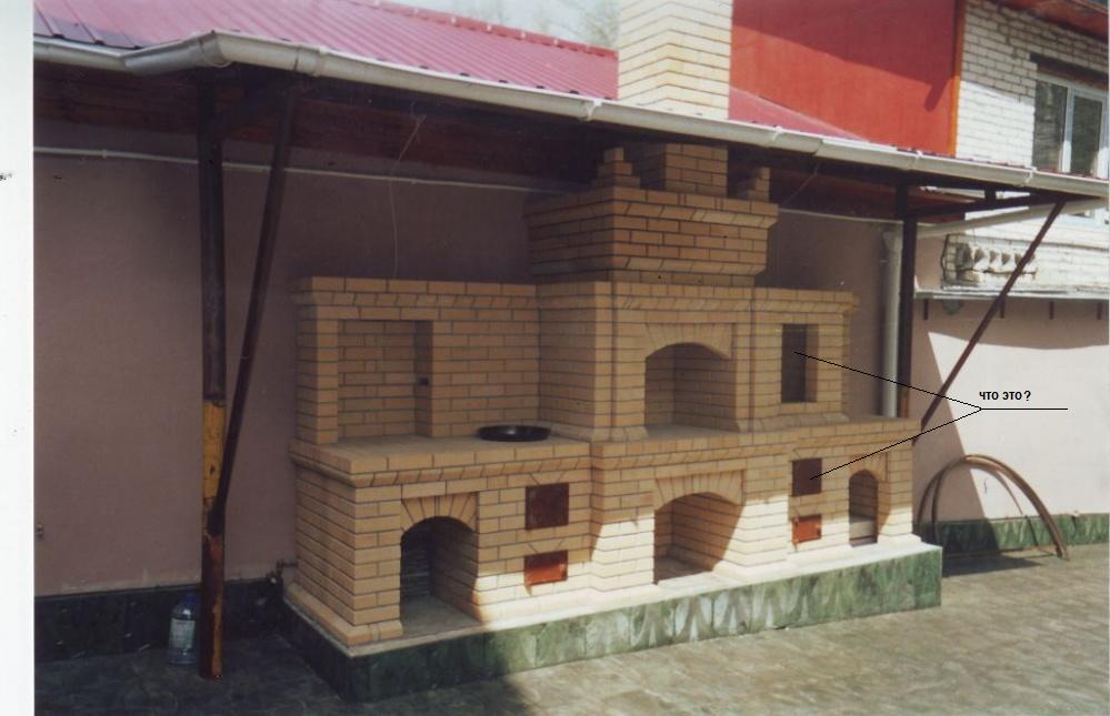 Здание Барбекю - готовое отдельно стоящее открытое, 4х6 м: две глухие стены из кирпича, два пролета на столбах, кровля