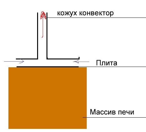 Плита у печи нагревается до очень высоких температур, но мало греет за счет низкой конвекции. А если над такой плитой на зимнее время собрать такой кожух, который усилит конвекцию? То получится ли увеличить съем тепла от плиты пропорционаольно увеличеию скорости потока воздуха ?