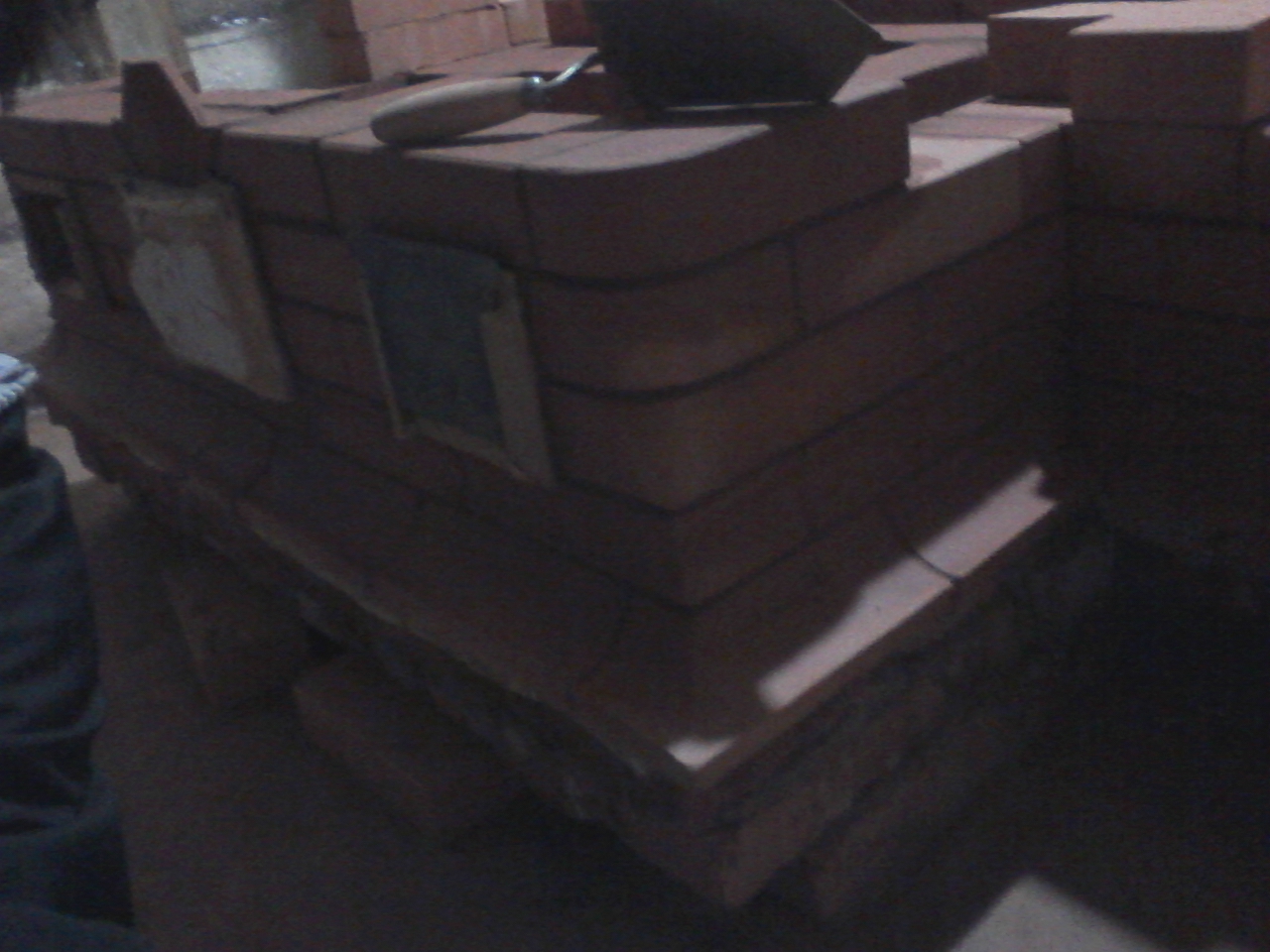 Так как печь ложу второй раз в жизни (от первой моей банной печи на фото идет труба, которую обкладываю кирпичом) есть множество вопросов:
