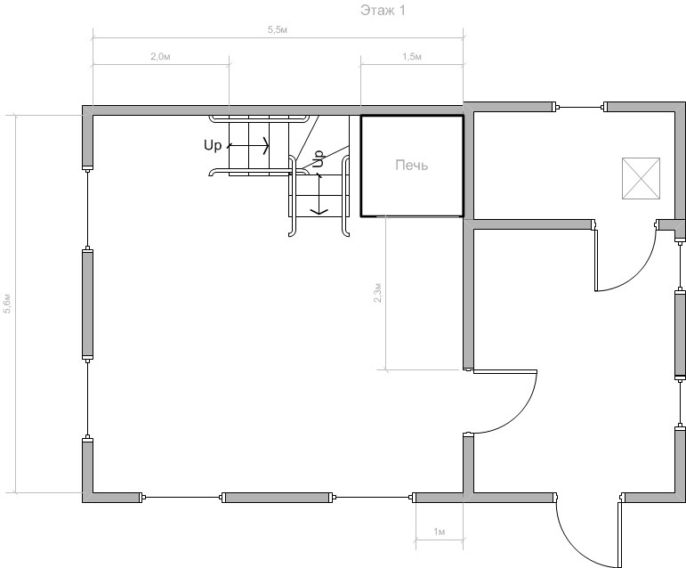 Конструктивные изменения дома (смещение трубы, лестницы, стен и т.д.) не предусматриваются.