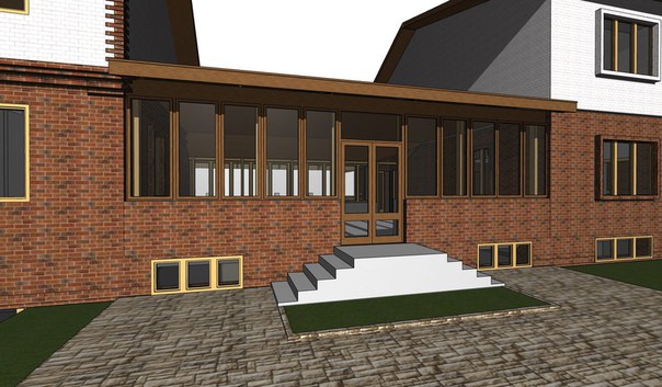 | ... между домами планировалась открытая веранда и я ставил две двери вместо тамбура, по желанию заказчика меняется открытая веранда на застеклённый зимний сад. |