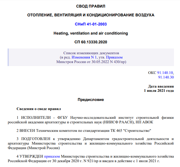 СНиП 2.04.05-91* «Отопление, вентиляция и кондиционирование»
