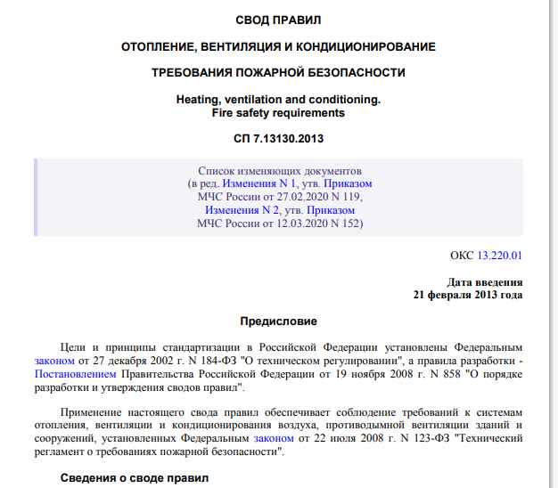 Отопительные строительные правила, кстати, мне кажется, тоже зачем-то раздвоились на техническое и противопожарное направления.