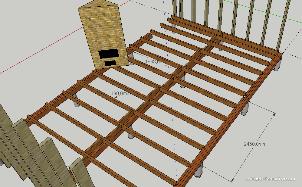 Выдержит ли мою кирпичную печь фундамент и лаги. Понимаю, что шаг лаг могу сократить. Но насколько и как это посчитать? А как насчет фундамента? Нужно ли еще добавлять 2 столбика?