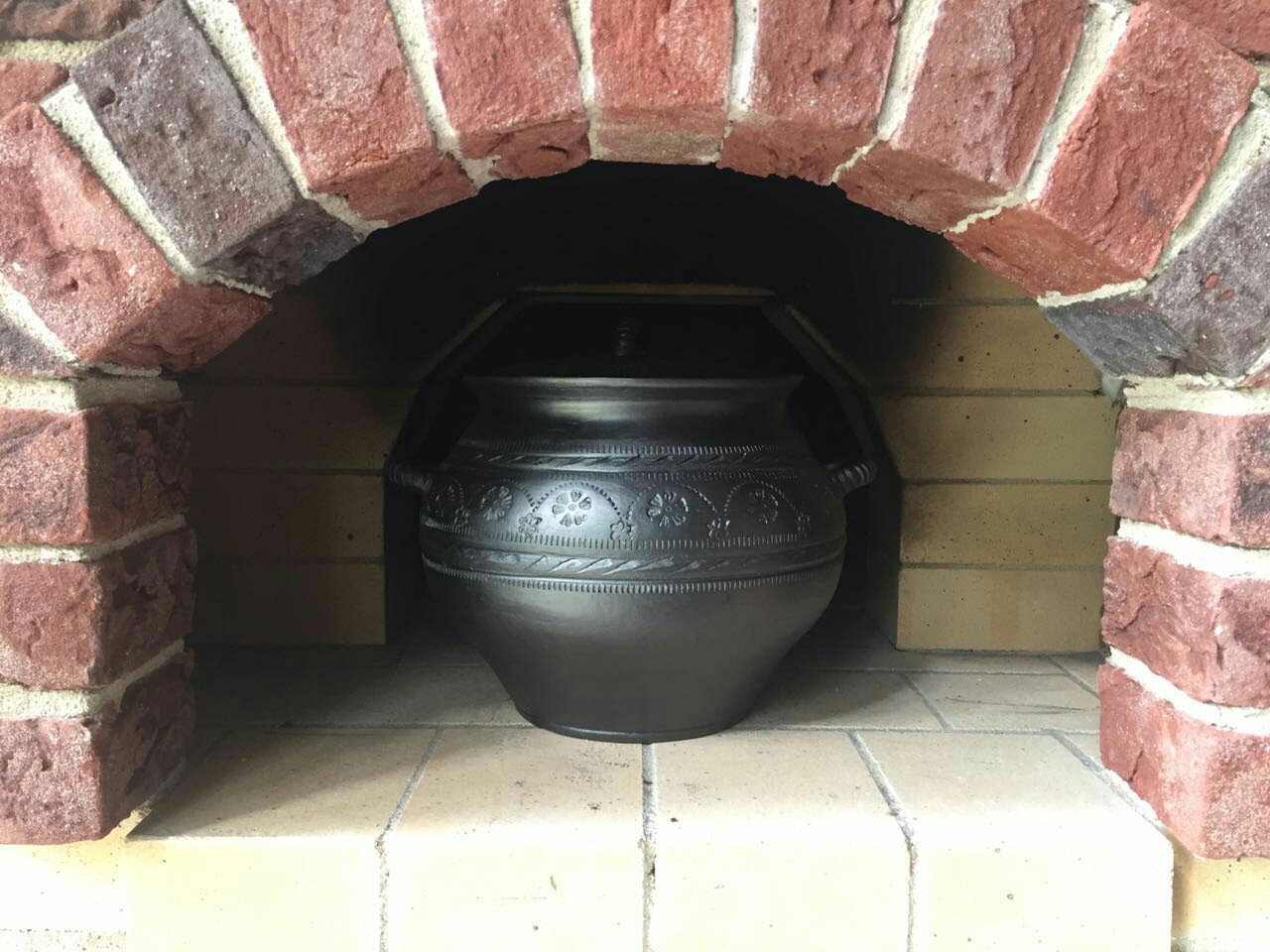 Чугунный горшок с не родной крышкой на следующий день был заменен на глиняный!