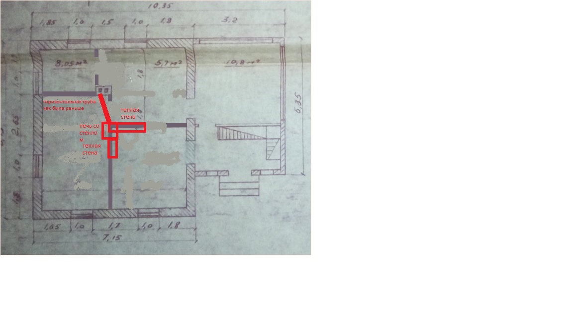 Спасибо за информацию) Еще вопрос, как лучше сделать горизонтальную трубу для соединения с уже существующей трубой (находится между ванной и кухней,на чертеже отмечена), а точнее из каких материалов. Как уже говорил, в данный момент старая голландка соединена с ней кирпичной горизонтальной трубой. Есть какие-то варианты поэстетичней и понадежнее? Перенос вертикальной трубы по факту уже не возможен технически. Так что надо как то соединить...