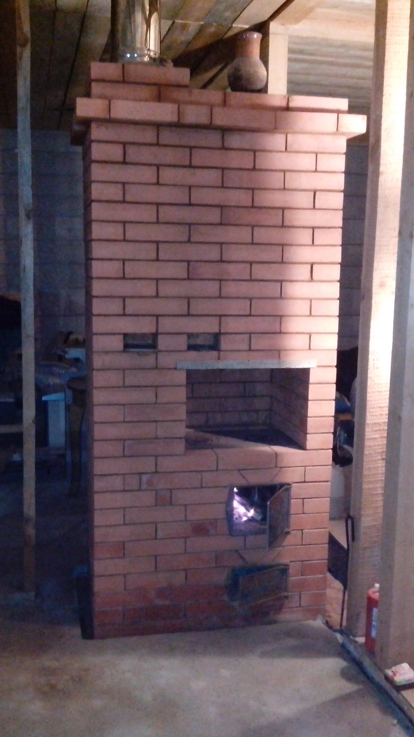 Я понимаю, что это от нищеты - негде было кирпича взять (печи глинобитные с массивными камнями в основании свода), понимаю, что брикеты эти наверняка в глиняной болтушке промочены, но всё же! Нам - это риск большой, но вот умели люди класть грамотно. Читал также про камины (кажется в Австрии), у которых под дубовый был. Умели мастера горючим материалам огнестойкость придать. Не чета нам. Я-то, ест-но, все эти брикеты выкинул и кирпичом заменил.