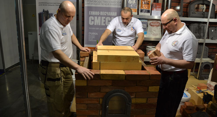 Традиционные русские печи из кирпича действительно пользуются большой популярностью, и, хотя профессионалы и не рекомендуют этого делать по соображениям безопасности, но при желании их можно сделать самостоятельно. Для того, чтобы облегчить работу, существуют чертежи печей из кирпича. Следуя указаниям и рекомендациям по порядовке отопительной печи из кирпича, можно построить такие конструкции, как возводили мастера на стенде. Поэтому в течение всей выставки проводились консультации по печному делу для всех желающих. На стенде Группы компаний «МДС» можно было сразу же подобрать все материалы для строительства печи — чугунное литье, шамотный кирпич, облицовочный кирпич, глины и смеси.