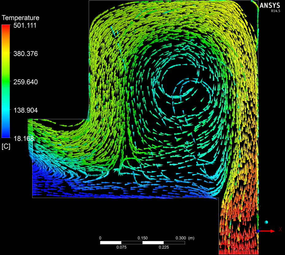 Интересный казус случился. На узком колпаке. Попробовал смоделировать, получил полное подобие. На картинках температурный профиль и направления движения газов. У кого какие мысли? Замечал ли кто подобное на других типах колпаков?