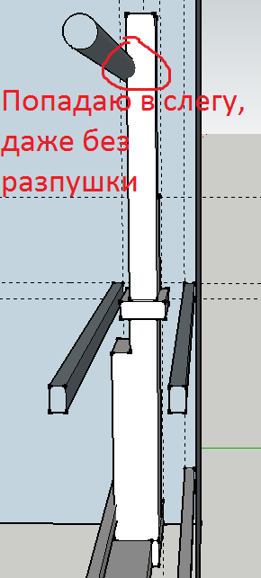 Проблема - труба упирается в слегу, нужно что-то делать и как-то ее обxодить.