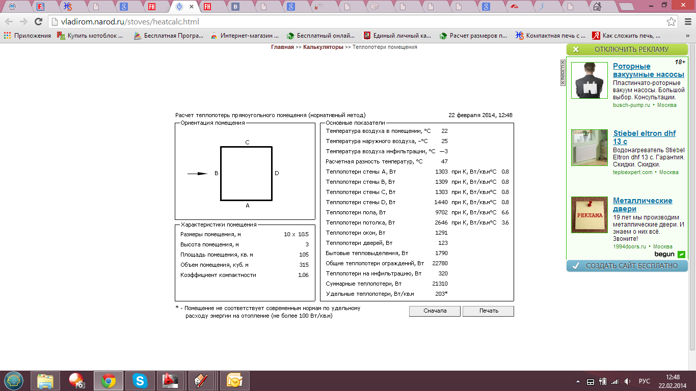Теплопотери по калькулятору -3110 Вт. Должно хватать ,так как сруб 200мм будет дополнительно утеплятся 100мм мин. ватои, а две стены внутренние и -20 *С. редко когда бывает. Хочу видеть внутрянку этого девайса. / ХК4-2 новый вариант/