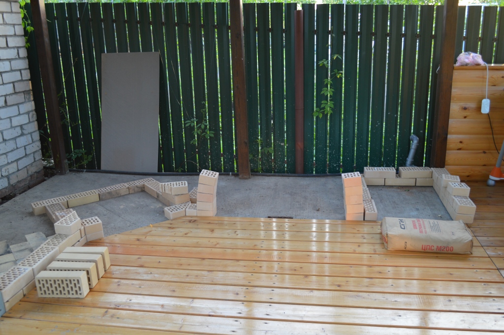 На позапрошлых выходных привез немного кирпича шамотного, и лес на беседку.