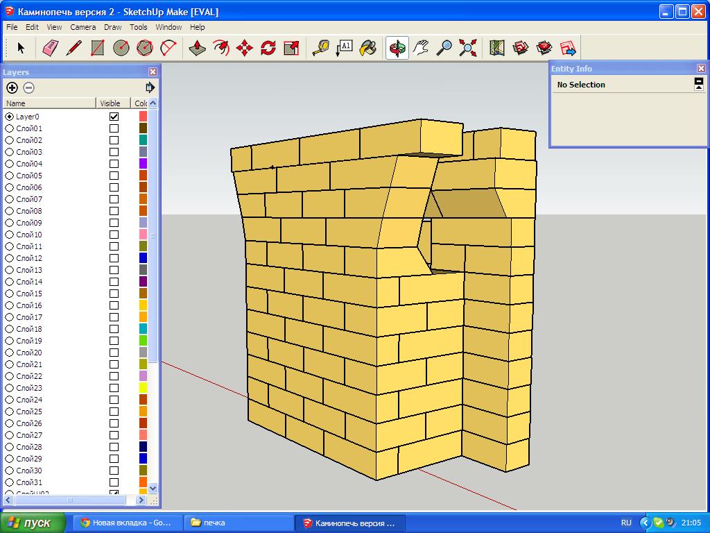 Между внешней кладкой и шамотом расстояние планирую 5мм.