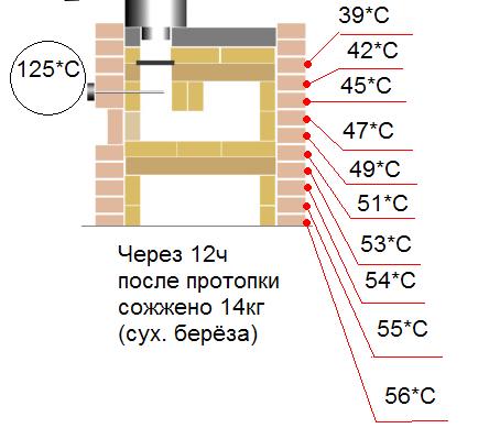 - температура на поверхности печи не менее чем в трех точках 65-75*С при толщине стенки более 12 см