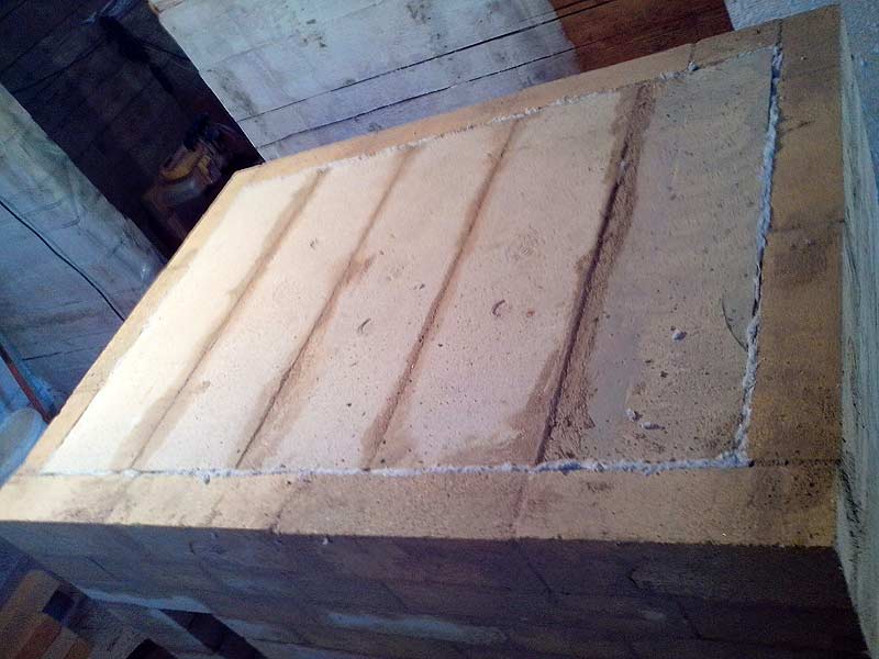 В топке под перекрытием лежит лист вермикулита 3 см.