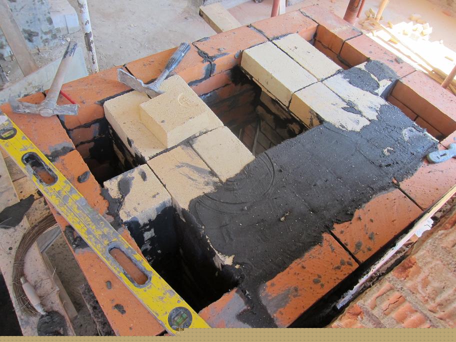Строили из двух видов кирпича и двух видах смеси. Печной кирпич на огнеупорную смесь и шамотный кирпич на смесь глины с чем-то.