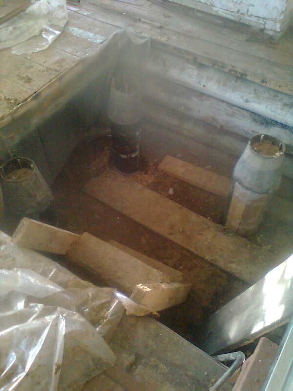 Если пол деревянный - первые 2-ва ряда - дымоходы не устраиваются, лишь поддувало во втором ряду.