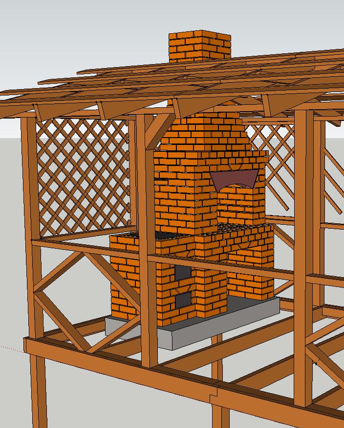 Выношу на Ваш суд проект сверхбюджетной барбекю с печкой. Сооружение планирую сложить в открытой беседке 5х3. Мучают некоторые вопросы.