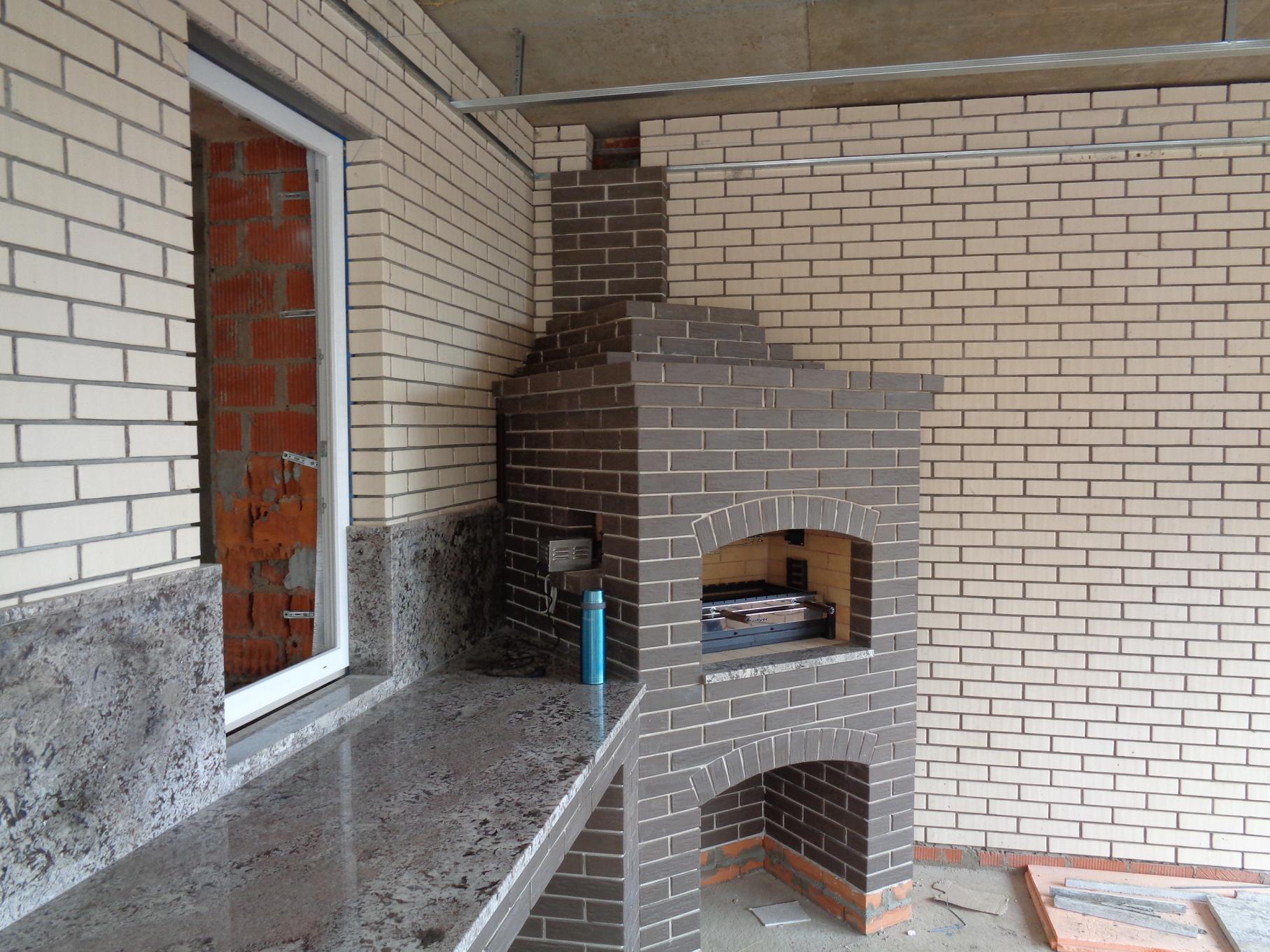 Полочки и верх - из отфрезерованного кирпича.