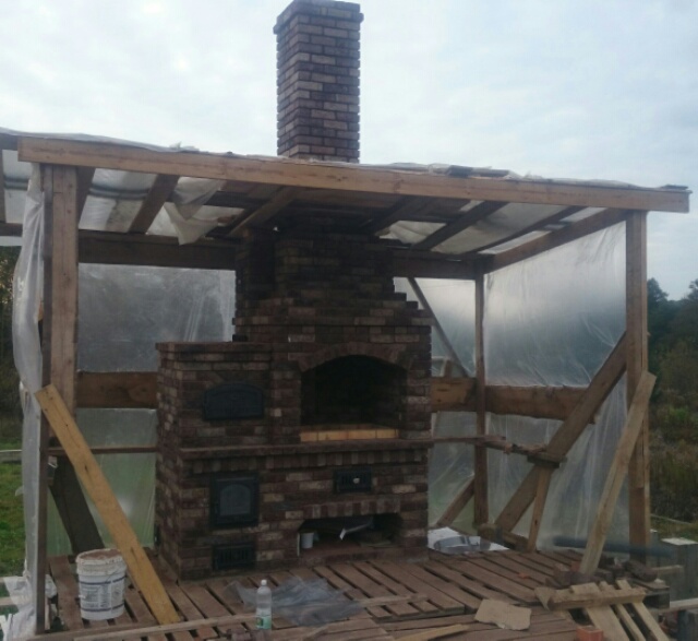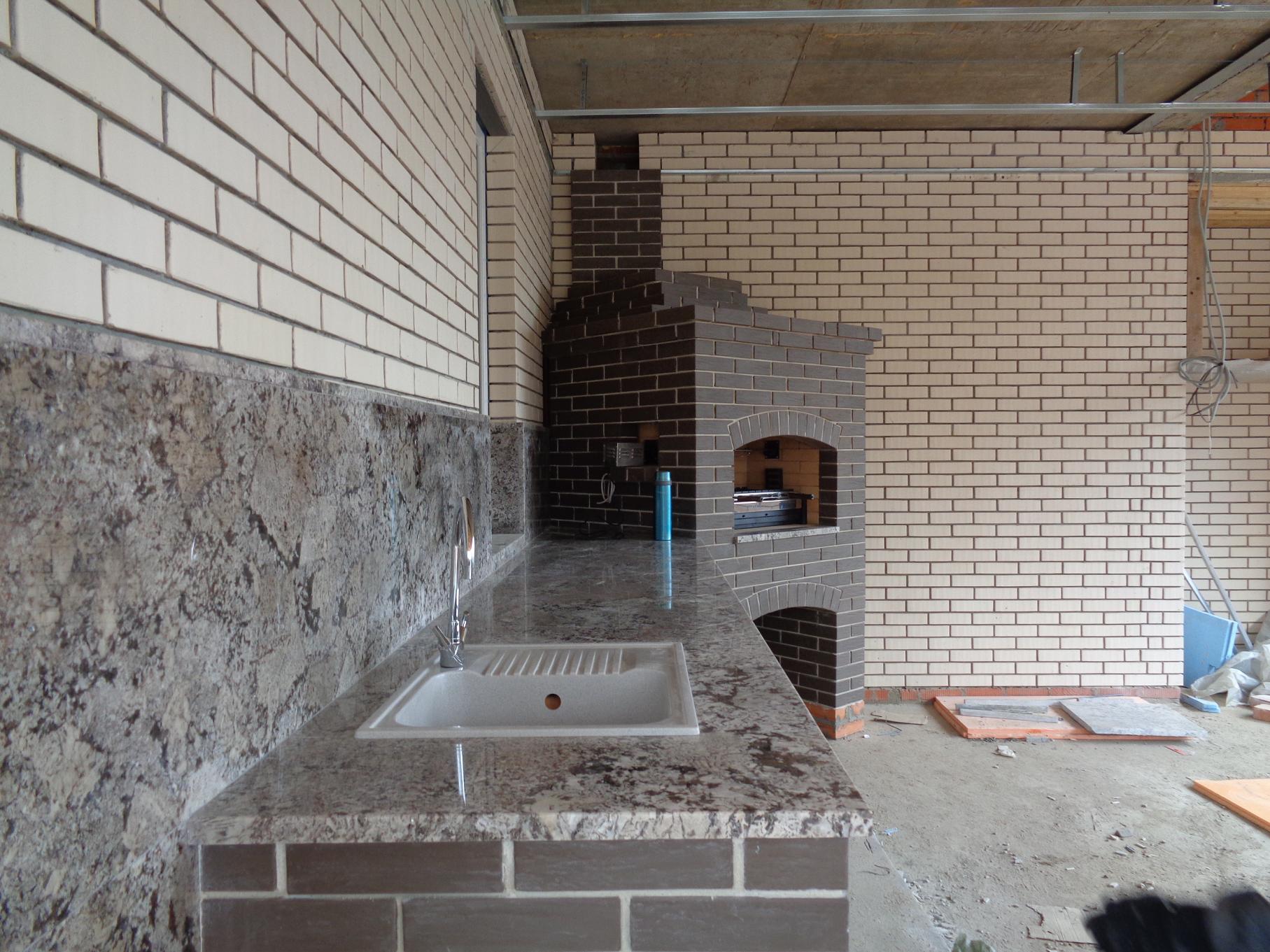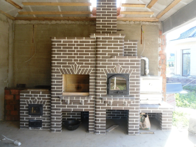 Вот такой комплекс - варочная поверхность, камин-мангал, маленькая русская печь за большой дверкой, хостер.