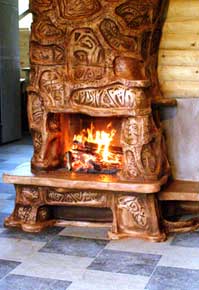Вот самый нормальный вариант, лежак со своей топкой. Можно пристегнуть и к открытому камину, " чтоб огнем любоваться", и газы вывести в параллельный дымоход.
