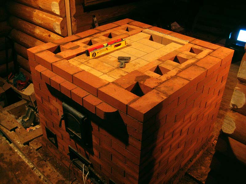Оба варианта, благодаря объёму внутреннего массива, имеют повышенную теплоёмкость, но первый вариант больше тепла аккумулирует внутри, а второй равномернее внутри и в наружных стенках.
