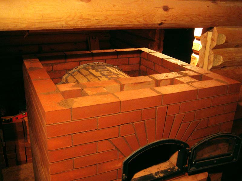 Да, засыпки нет. Свод утеплён слоем асбеста в 20-25 мм. Это для того, чтобы горнило прогревалось быстрее и дольше не остывало и чтобы в летнем режиме не греть перекрышу и, соответственно, помещение. Сзади печи комната небольшая и для её отопления достаточно мощности стенок ниже горнила, которые греются в зимнем режиме. Для других условий можно было бы сделать засыпку.