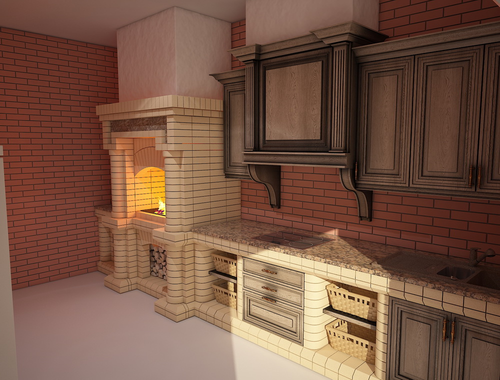 Там ведь их больше .. не ? Александр , вот такой вариант , это ваш выбор или ненавязчивое пожелание заказчика ? Выглядит намного выигрышнее , чем просто кирпич , хоть и мастерски уложенный . А за камнем тот же огнеупор ? |