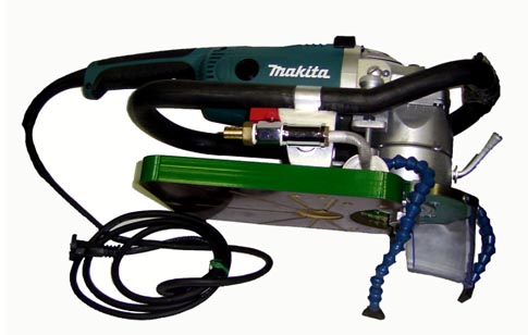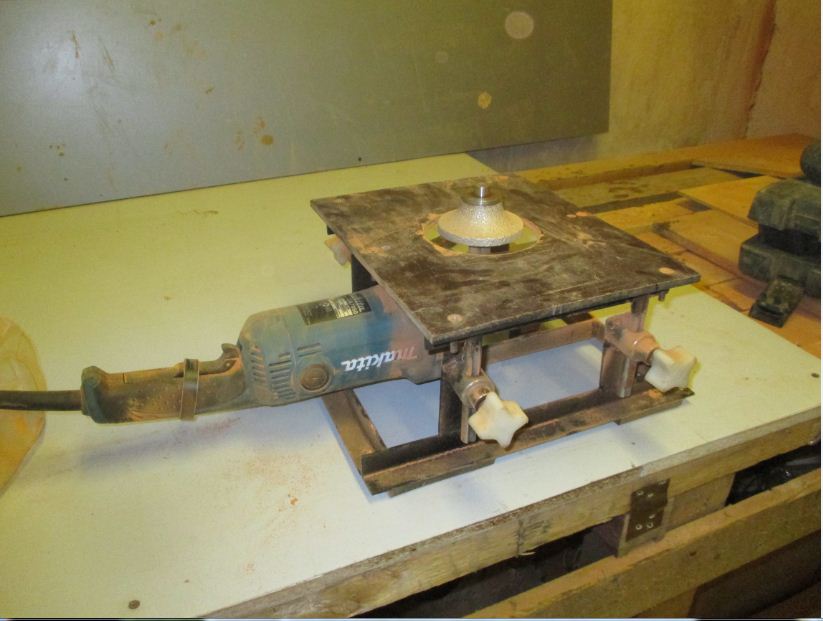 Боюсь, что подшипник на фрезе без подачи воды "полетит" очень быстро. Да и сама болгарка при таком расположении от пыли "сдохнет" на десятом кирпиче. Не говоря уже про легкие. Им "хана" настанет еще быстрее. Зачем придумывать "дешевку", когда есть уже полноценные и готовые варианты адаптации инструмента для нанесении профиля: ПОСМОТРИТЕ ВИДЕО http://www.prostanki.com/video/19251/kantofrezer-MAKITA-dlya-obrabotki-bokovyih-poverhnostey-iz-kamnya