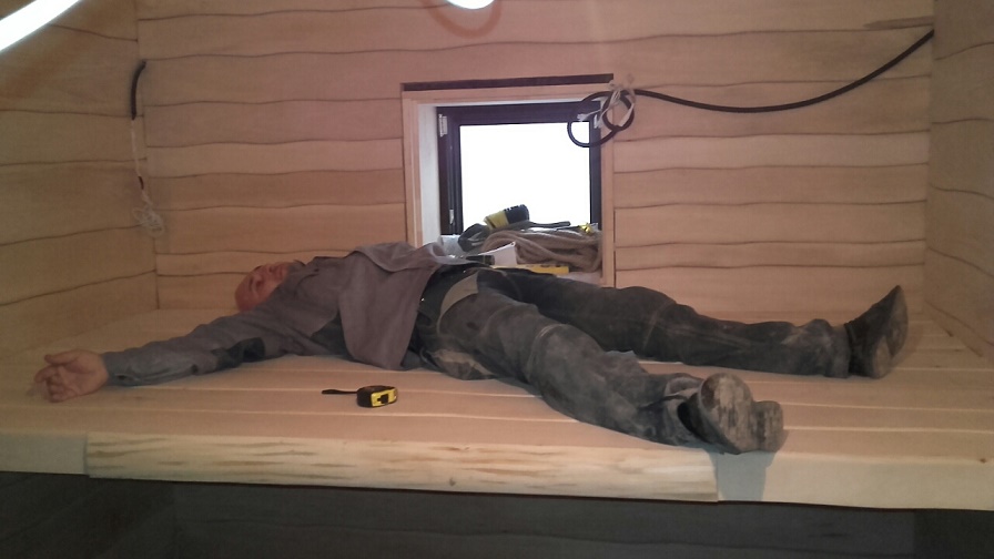 Рекомендую широкие полки 1300мм для тех кто любит вольготно поваляться в парной.