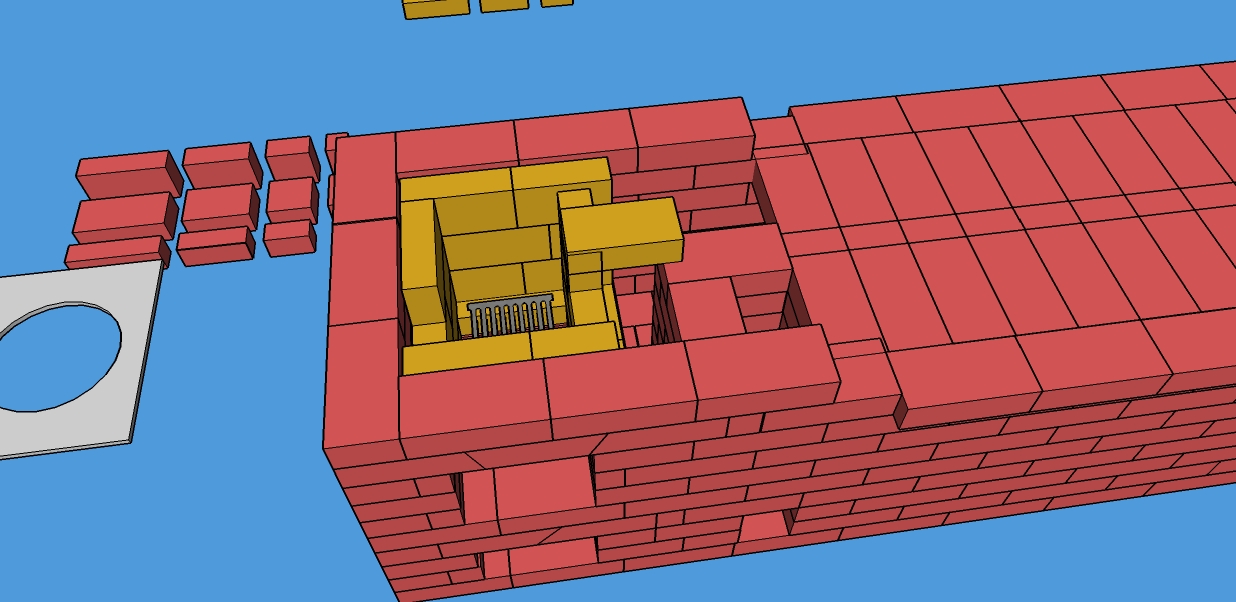 К сожалению ваш фаил в СК такой большой что переделав его я не могу его выложить на форум. Я вас не до конца понимаю. На мой взгляд у автора все правильно. Лафет нужно сдвинуть к наружным кромкам красного кирпича.