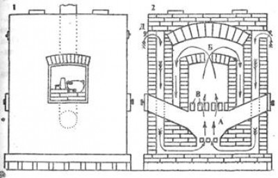 - Камера обжига над топкой, свод топки это решетка.