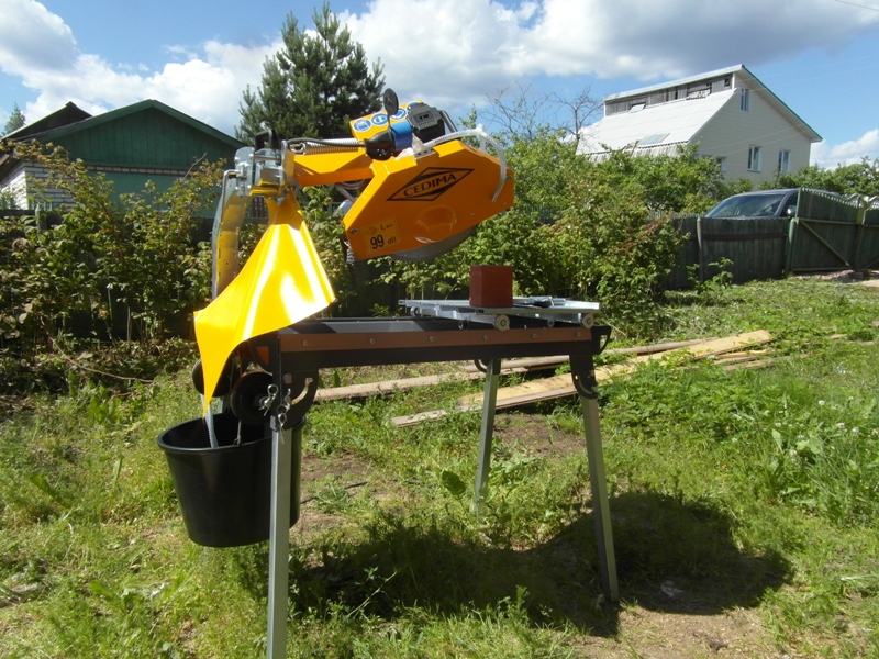 один минус у цедимы - краска на столе вся облупилась (но может это особенность только моего стола), при покупке я доплатил немножко и взял диск 400 (Easy Cut) - шамот фигачит на ура, а вот красный кирпич приходится прилагать усилия, чтоб его туда заталкивать (это неудобно для резки мелких деталек, резка шамота помогает ненадолго ). на следующей печи попробую макитовские диски.