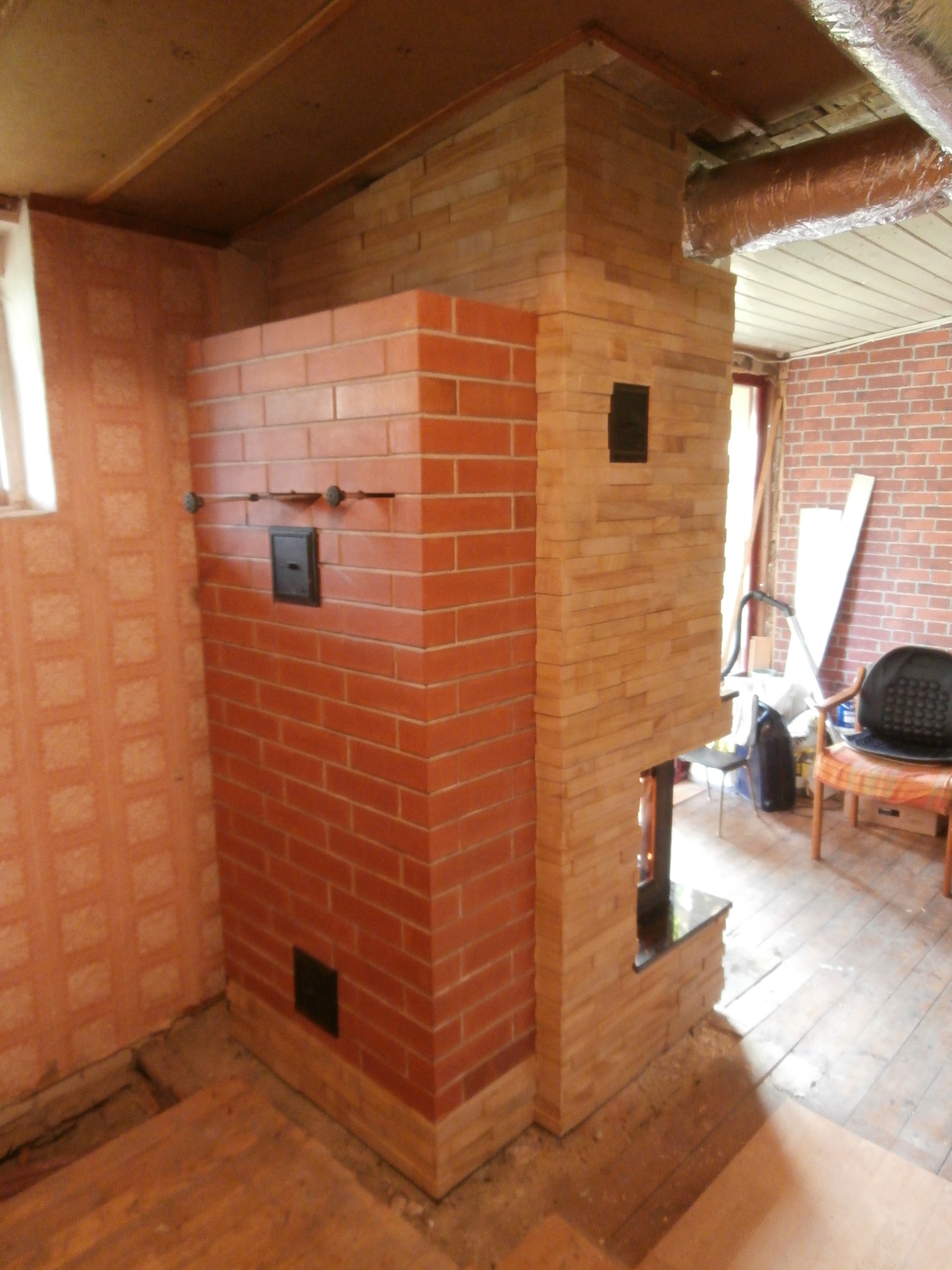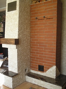 А вообще , внешний вид достойный,но по внутреннему наполнению позвольте с Вами не согласиться.Снизу на фото то что греется с двух загрузок,но там и толщины другие, в щитке шамот на ребро а облицовка шамот 3см и плюс ко всему стоит автоматика на горение