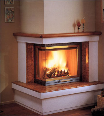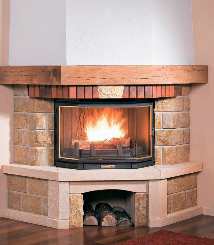 Угловой камин будет более эффективен при прогреве комнаты.