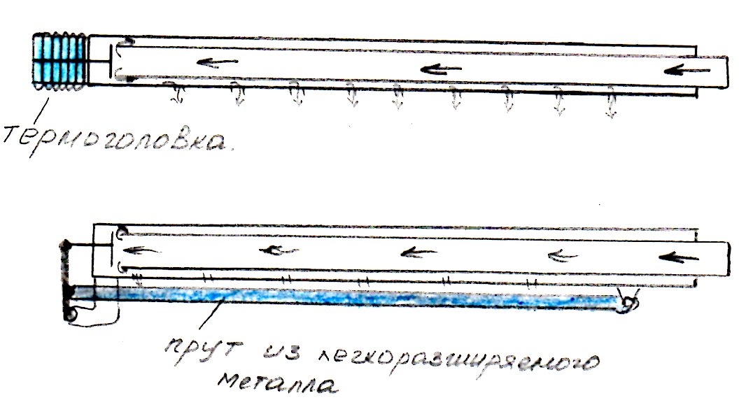 Хочу открыть новую тему для обсуждения вопроса автоматического регулирования подачи вторичного воздуха. Суть идеи в создании простого термоклапана, который открывался в нужный момент (при разогреве печки) и закрывался при прогорании дров (уменьшении температуры). Примерный рисунок сделал от руки.